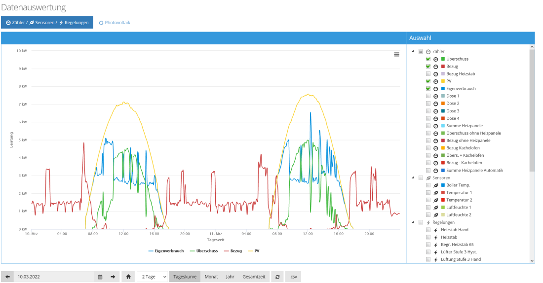 Betrachten Sie Ihre verbräuche und Anlagenwerte Live und steuern Sie Ihre Anlage in Echtzeit direkt aus dem Portal heraus.